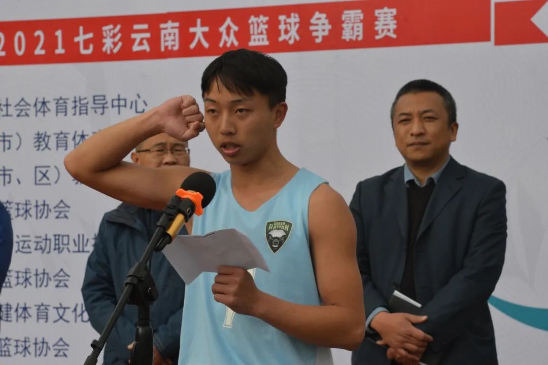 开幕仪式中,金柯宇同学首先作为运动员代表进行了发言宣誓并表达了自己对本次篮球赛的期待。