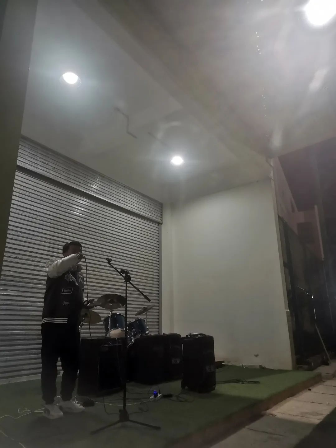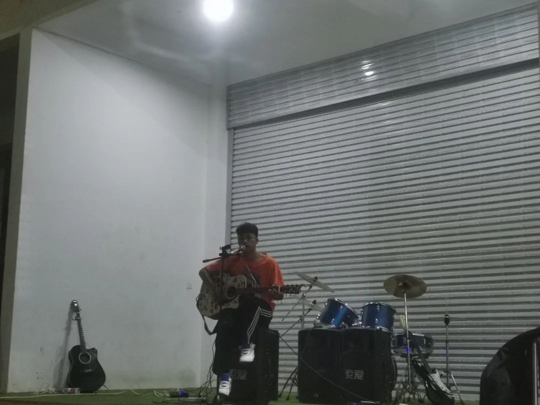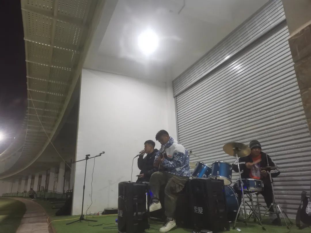 单人独奏环节,舞台虽小,却无法挡住主唱的热情;天气虽冷,但却能让每一颗心都在这一刻被激情的旋律所点燃。