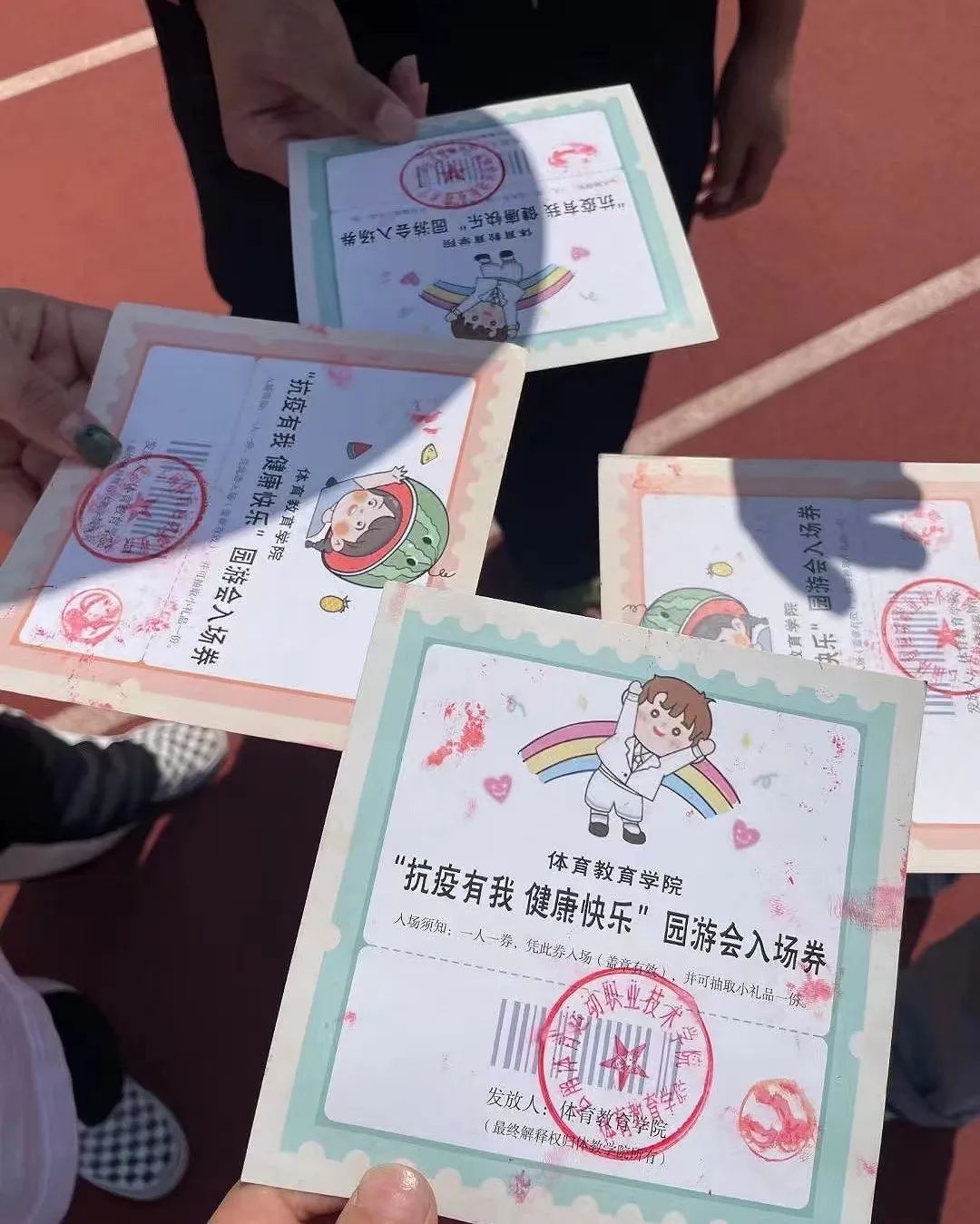 本次活动体育教育学院从细节入手,积极创新活动形式,为参与活动的师生制作发放了手绘入场券,在活动场地入口安装了彩虹门,提升参与热情。游戏设置方面,本次游园活动共策划了“吹走烦恼”、“双向沟通”、“悦纳自我”、“三针疫苗”、“快乐爆破”等25个趣味游戏,完成相关游戏,即可获取印章一枚,集齐十枚及以上印章,可换取体育教育学院精心准备的小礼品一份。体育教育学院充分发挥心理教育优势,积极关注疫情下学生们的身心健康,通过团体的人际互动,促进学生个体在交往中通过学习、体验、协作,去不断的认识自我、探讨自我、接纳自我,从而调整和改善与他人的关系,为广大师生营造了信任的、温暖的、支持的团队氛围。师生们积极参与、热情互动,在游戏中认识自我、悦纳自我,在互动中加深了解、团结协作,在观摩中传递喜悦、感受快乐。