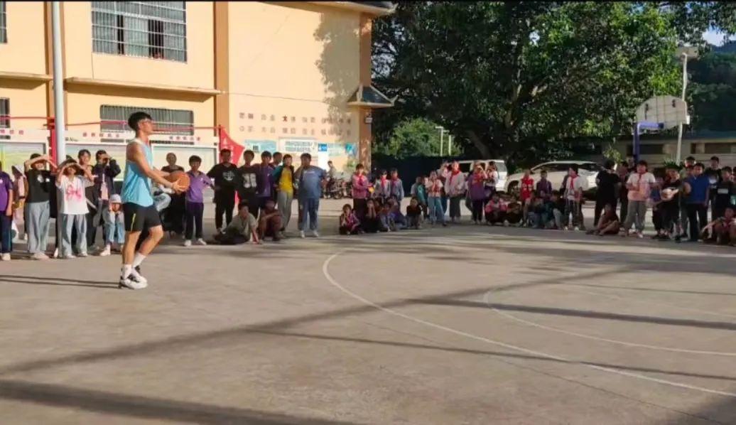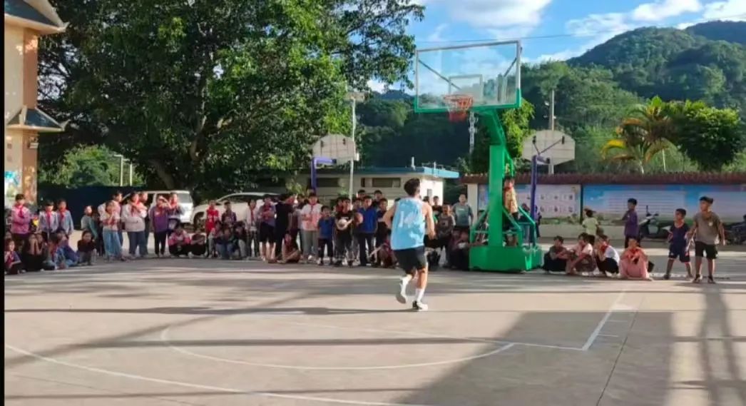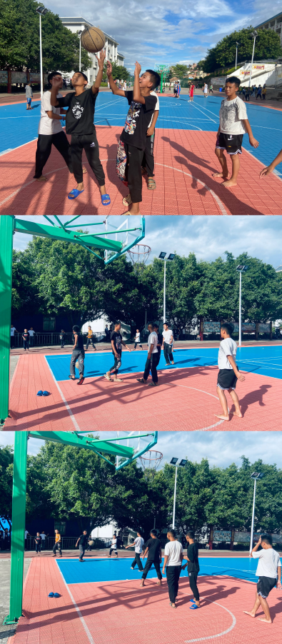 下午顶着火辣的大太阳,同学们在烈日当空下尽情的彰显着各自的篮球技术,没有一丝报怨与不满,他们的执着与坚定是我不断努力地动力源泉。我们在一起交流篮球经验,一起做准备活动,一起玩游戏,一起面对面交流他们的校园生活趣事,一起…这一切让我感受到了从未有过的充实与快乐。现在的我每天都期待与他们明天的见面,想把我所会的篮球技术毫无保留的传递给这些大山里的小可爱们。