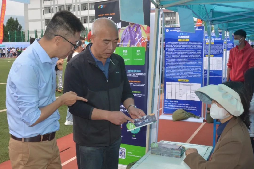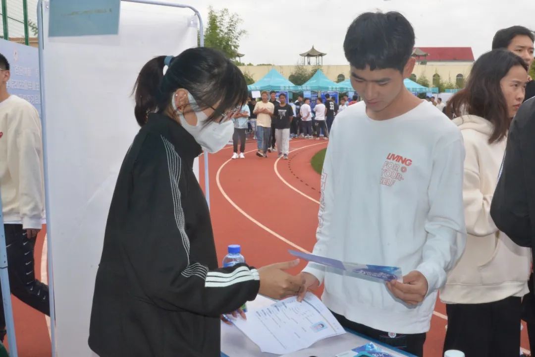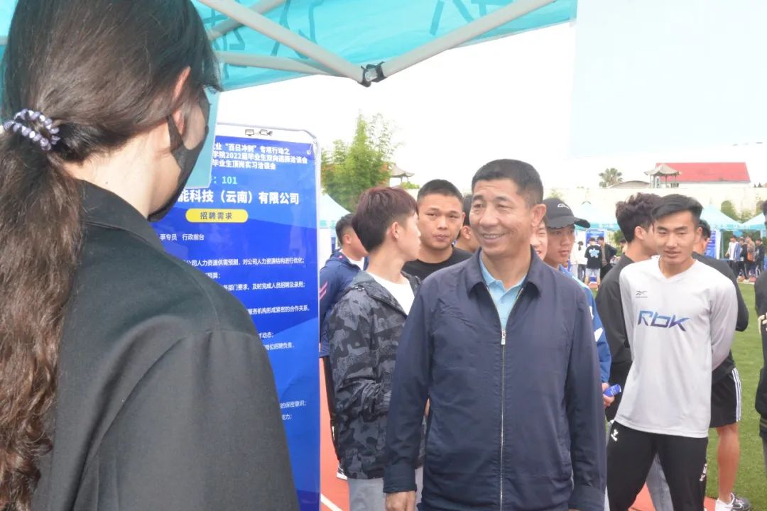 5月31日,2022届毕业生就业“百日冲刺”专项行动——allwincity万象城官方网站2022届毕业生校园双向选择洽谈会暨2023届毕业生顶岗实习洽谈会,在学校小田径场如火如荼地开展。本次双选会采用学生志愿者代为招聘的方式进行,所有参加的毕业生和用人单位代表均严格落实昆明市疫情防控相关要求。双选会共有190余家用人单位参与选聘人才,提供就业岗位6300余个,涉及体育、教育、制造业、信息、食品、管理、营销等多个领域,学校共有2000余名毕业生参加了双选会,800余人达成初步意向。