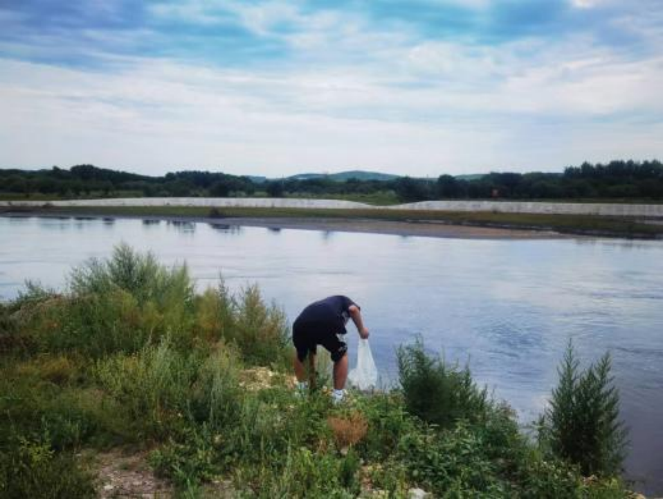 这次借助“‘河’我一起,保护母亲河”净滩活动,我向社区发起了号召,呼吁人们一起净化河滩。大家行走在岩石、沙滩上,一次次弯腰捡拾,将烟头、瓶盖、渔网等垃圾捡起放进袋子里,河滩也终于重现了儿时的模样。从身边小事做起,参与生态保护,使家园天更蓝、草更绿、水更清,共同守护美丽河滩!