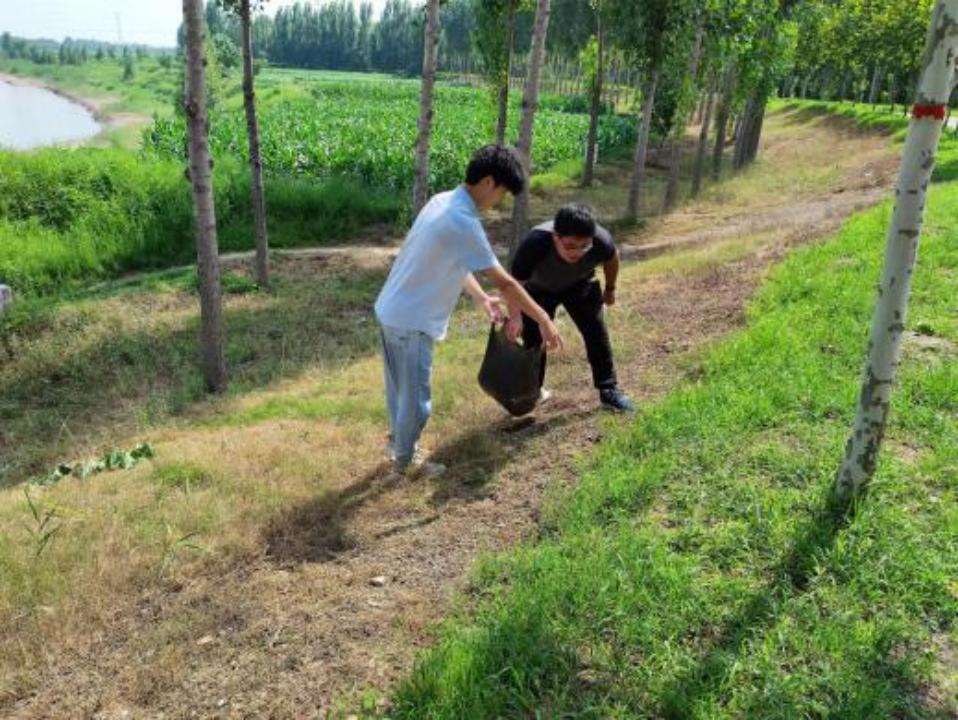 大沙河是海河流域卫河的一条支流,河道全长115.5公里,焦作境内长74公里,一直属焦作泄洪河道。活动伊始,我们在大沙河旁的草坪帮助工作人员除草,并捡拾塑料瓶等垃圾。在完成垃圾捡拾工作后,我们在大沙河的黄沙滩和白沙滩分别进行了消杀工作,为驻足的行人提供更加干净安全的休息环境。
