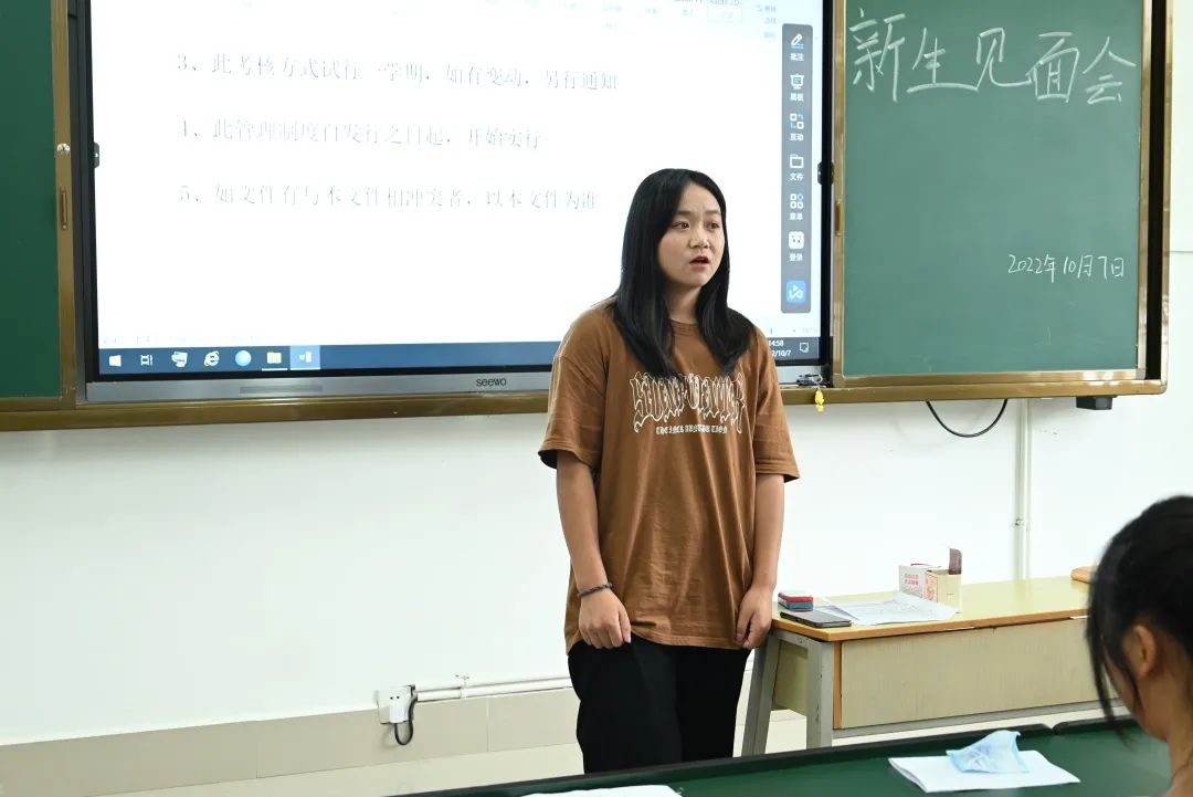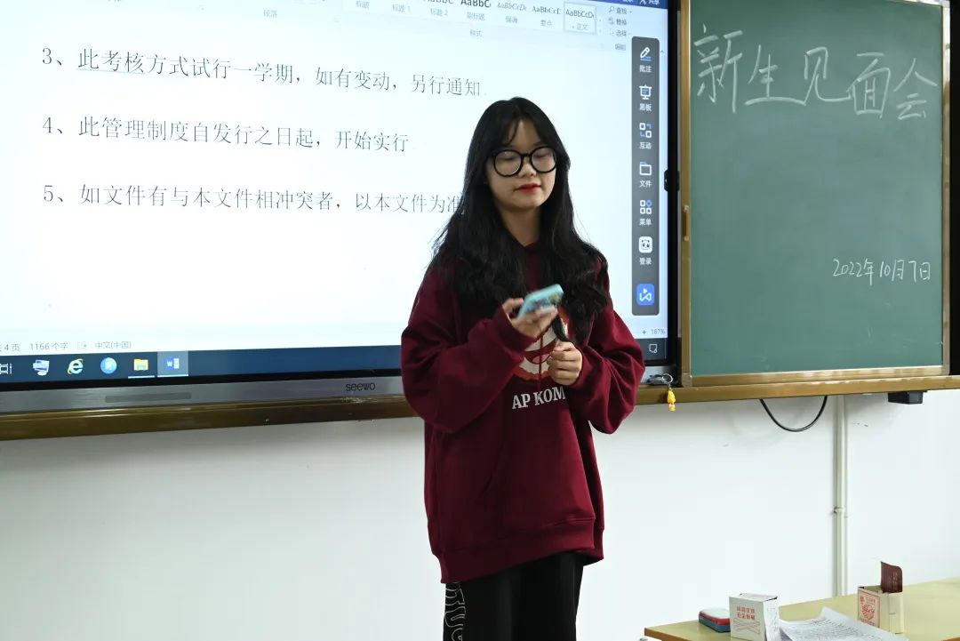 会议第三项议程:各部门的负责人依次上台发言,详细地为大家介绍了各部门的职责、工作内容及要求。同时他们根据自己的亲身经历,鼓励新同学们要有理想、有担当,明确自己的职责,不辜负自己的选择。