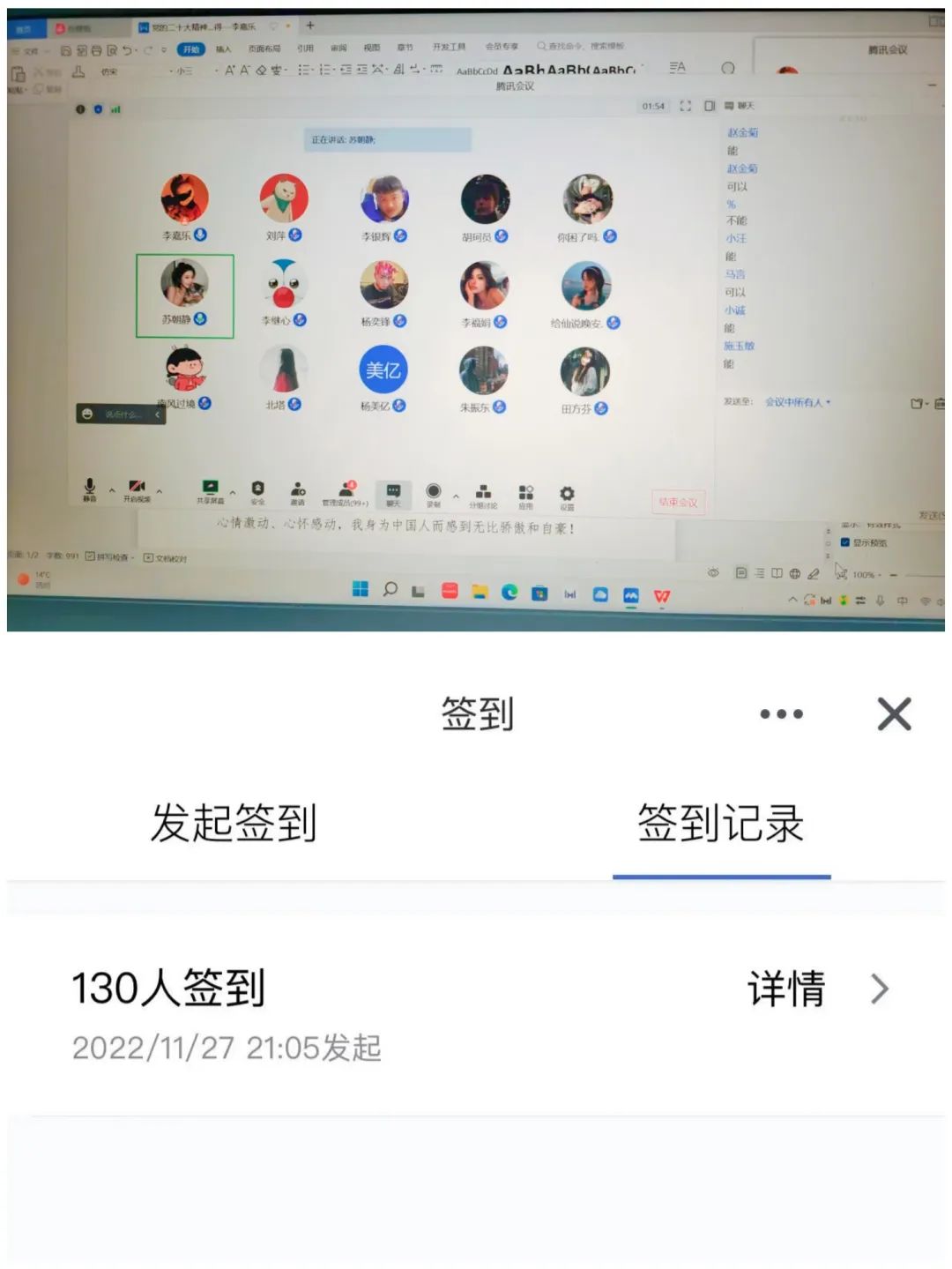 2022年11月27日allwincity万象城官方网站青年志愿者协会通过在线视频会议的形式,组织全体工作人员共同学习党的二十大精神。本次会议由青年志愿者协会主席李嘉乐组织主持开展,万象城官网青年志愿者协会130余人参与线上学习。