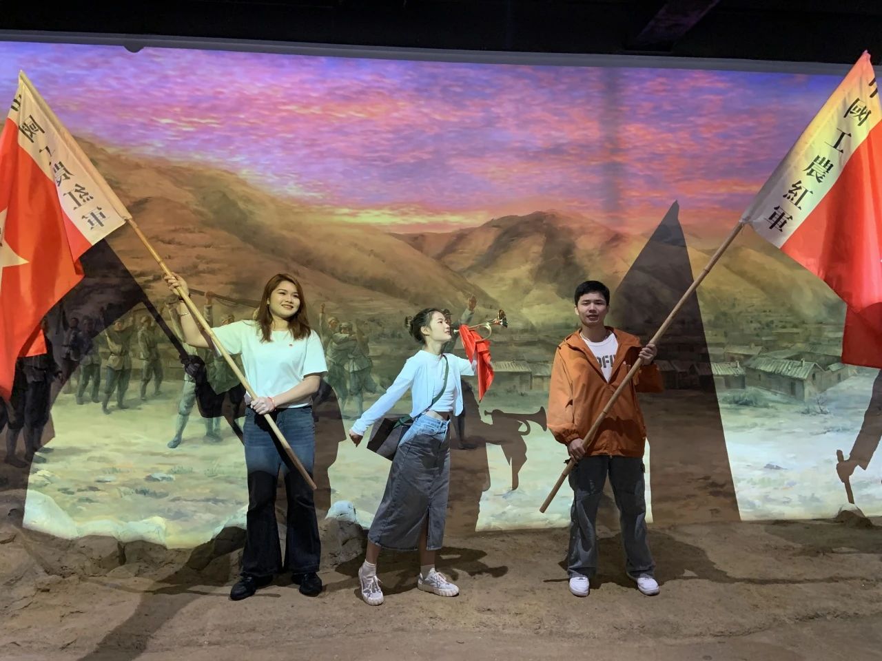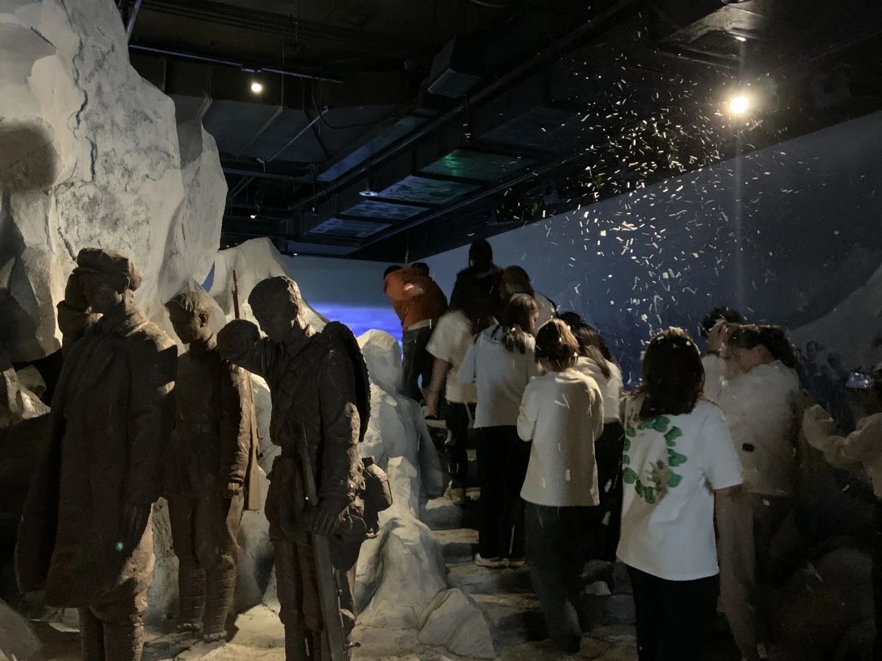 穿过时光隧道,同学们来到了沉浸式体验飞夺泸定桥场景的展馆。在这里同学们体验到了红军革命战士的浴血奋战和飞夺泸定桥的艰难险阻,更领悟到了红军将士英勇顽强、不怕牺牲的革命英雄主义精神。