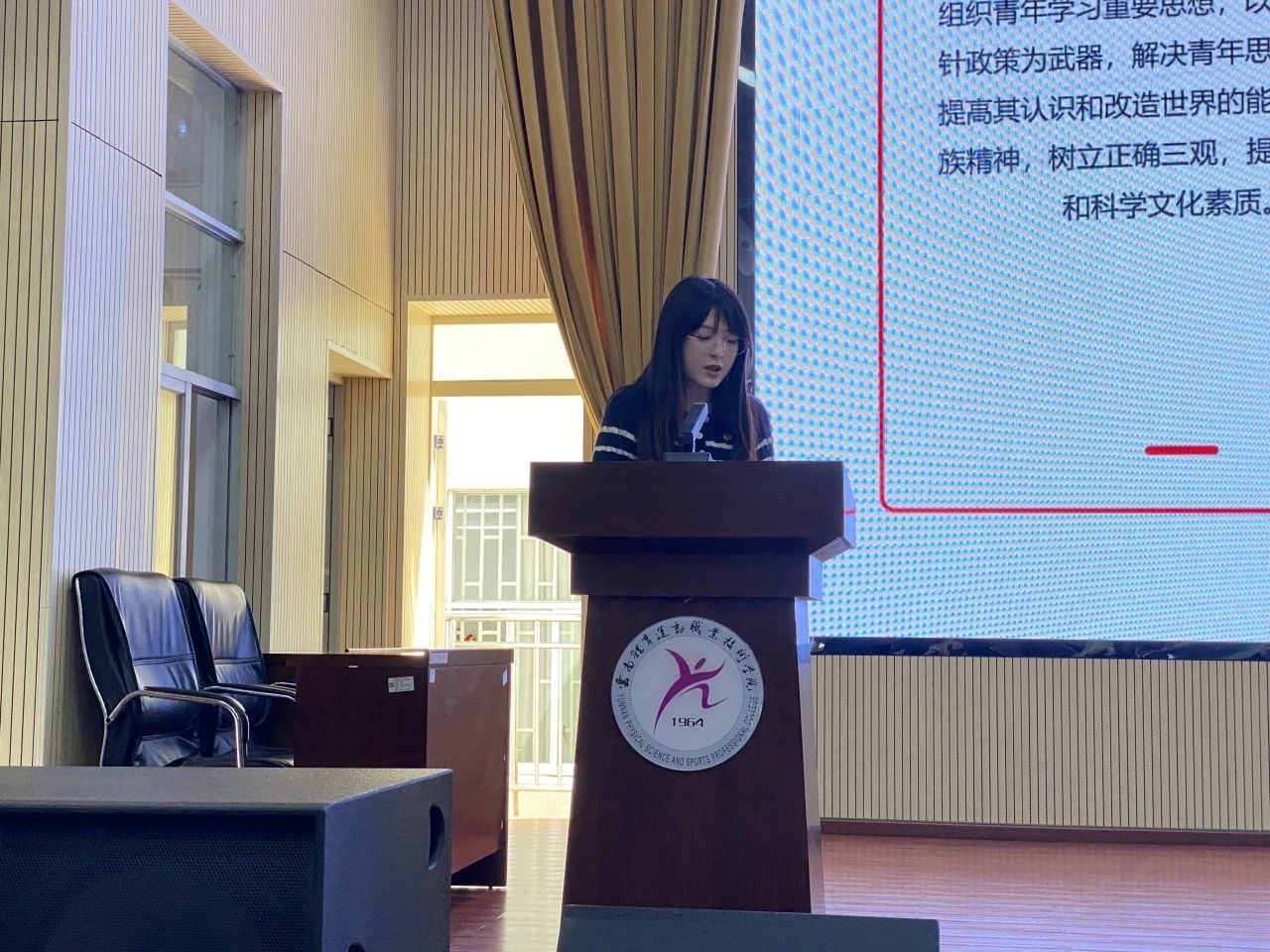 运动健康学院团总支书记宋雨昕老师围绕如何办好一个有趣又有意义的团日活动展开宣教,针对团日活动的意义、类型进行介绍,并针对团日活动的具体策划及开展进行了详细的讲解。