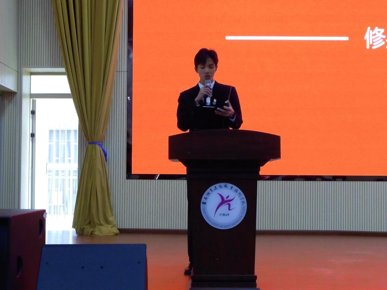 校学生会主席团成员李海岩以《清廉修身,打造风清气正学生会》为题进行了学生会工作作风建设的报告,号召广大学生会干部要从自身做起、从身边做起、从每件事情做起,让责任、奉献和自律常驻心间,恪守学生本分。把努力为同学服务作为主要目的,从同学中来、到同学中去,认真倾听广大同学的诉求,诚心实意帮助同学解决困难。