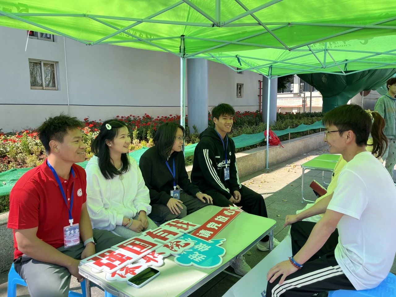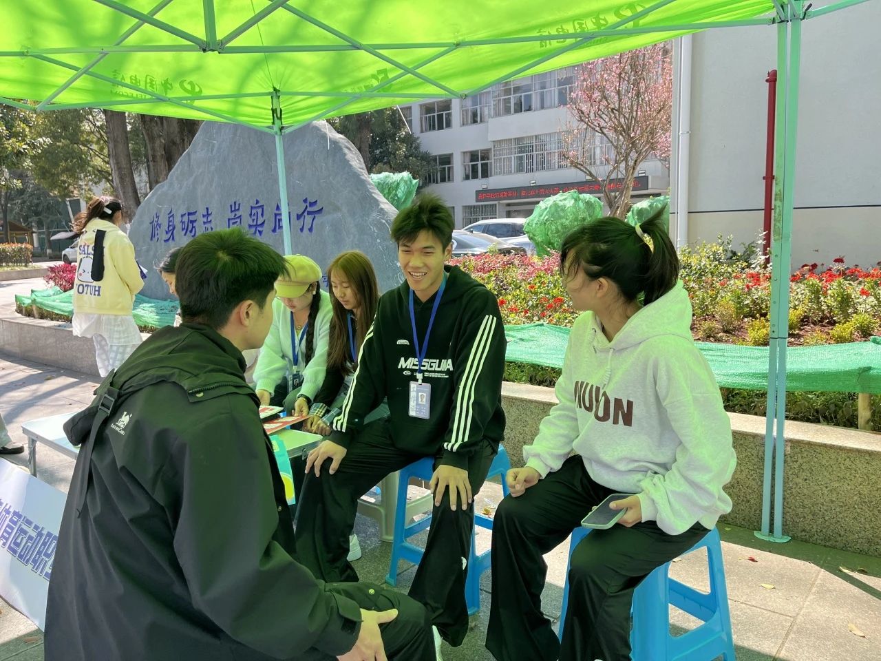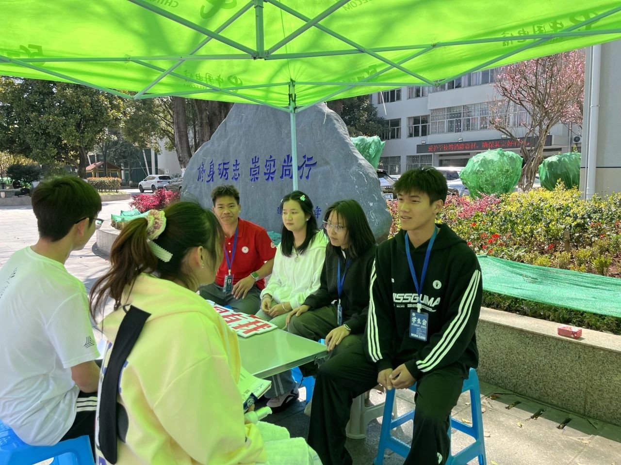 在活动现场,学生会的同学们认真执勤,为前来咨询的同学们排忧解难,用他们的实际行动传承并践行雷锋精神。