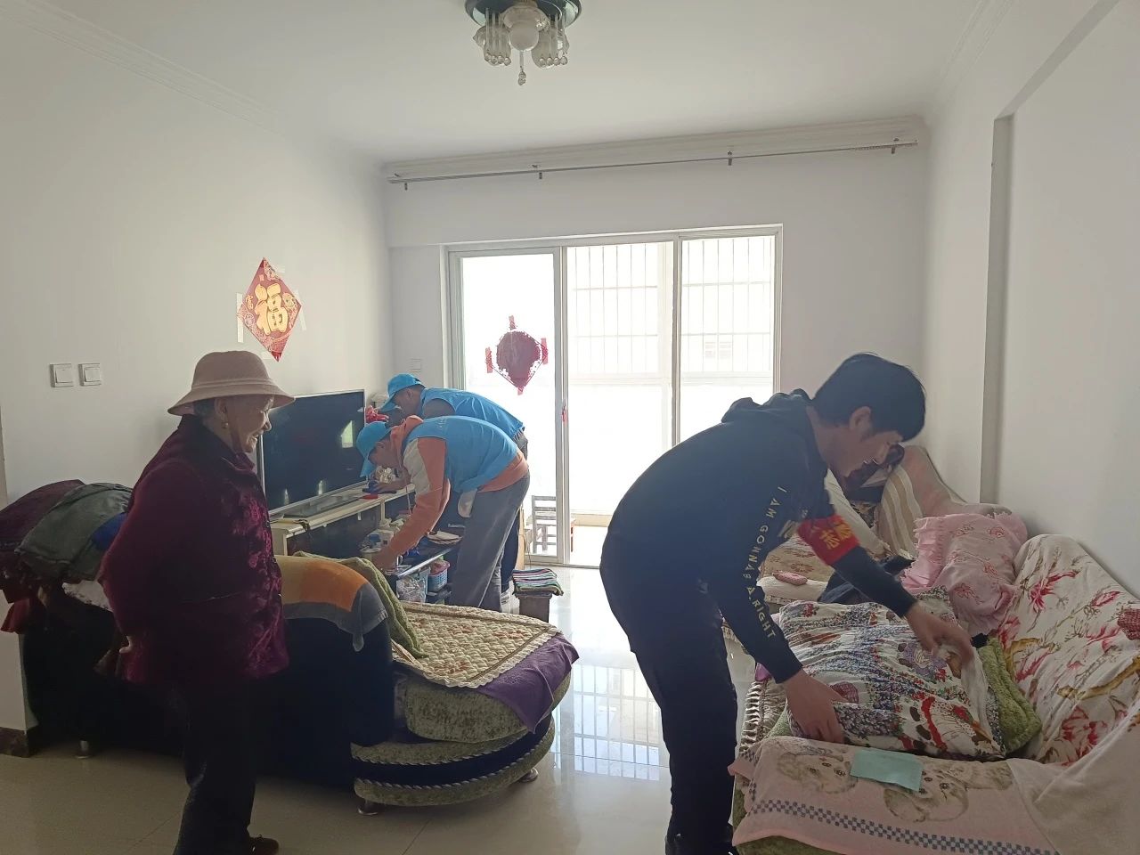 团员青年们以“敬老、为老、助老”为宗旨,在物业工作人员的带领下,星海社区工作人员和万象城官网团员青年们团结协作,将爱心带给独居老人和高龄老人,入户开展了大扫除、测量血压、反诈宣传等助老活动。团员青年们还向老人送上了提前准备的祝福语,与老人们拉家常,一起谈心解闷,现场呈现着温馨的气氛。