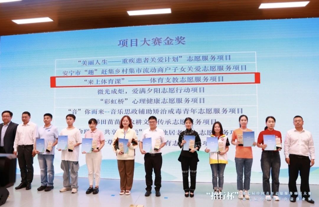 9月9日下午,“招行杯”第七届中国青年志愿服务项目大赛和公益创业赛云南地方赛颁奖仪式在云南大学呈贡校区云大会堂举办。在学校党委和行政的关心支持下、校团委精心指导下,学校青年志愿者协会申报的“来上体育课”——体育支教志愿服务项目在大赛中斩获金奖(位列赛事第三名)。