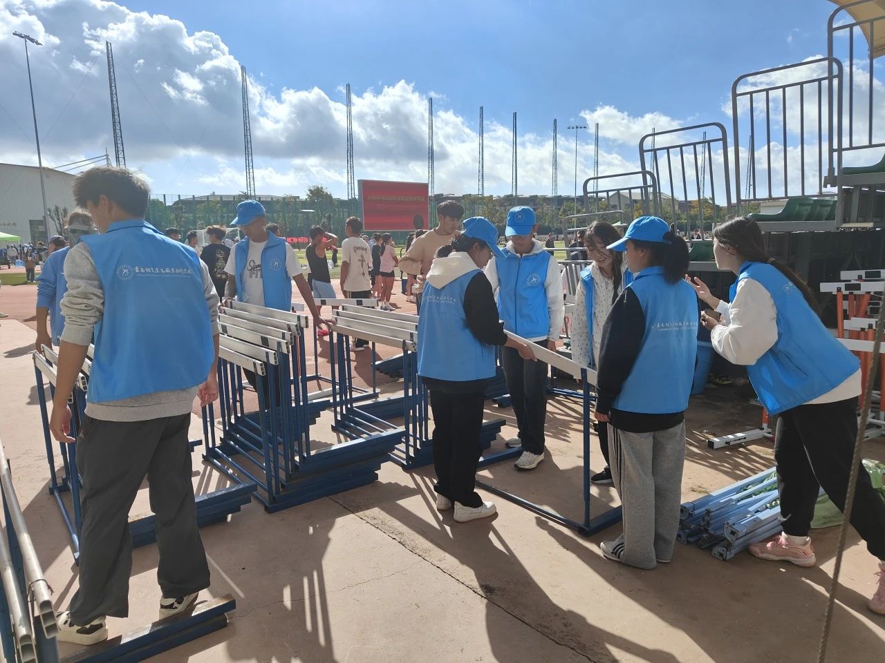 发奖品组的志愿者们则负责奖品的准备和发放,确保每一位获奖运动员都能及时领到属于自己的荣誉。