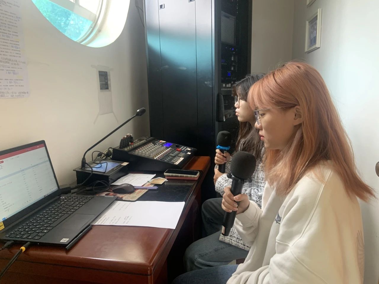 “用声音传递温暖”负责日常校园播音、优秀文稿朗诵、经典人文文章播报,轮班校园之声公众号录音推送等工作。