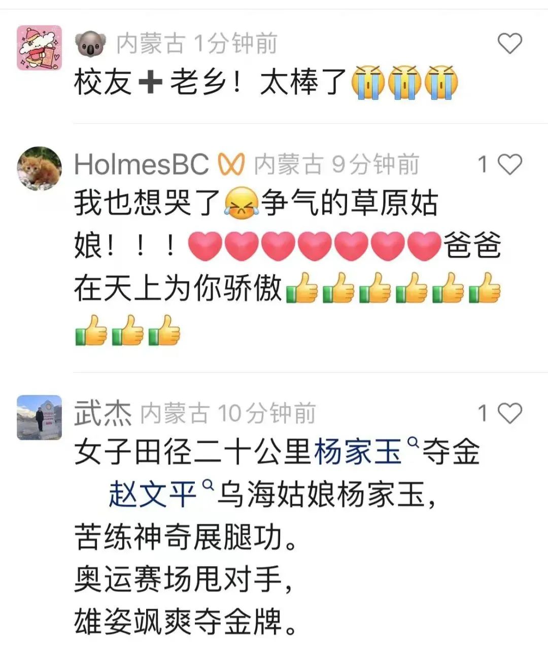 随着杨家玉的夺金,无数网友也发出感慨: