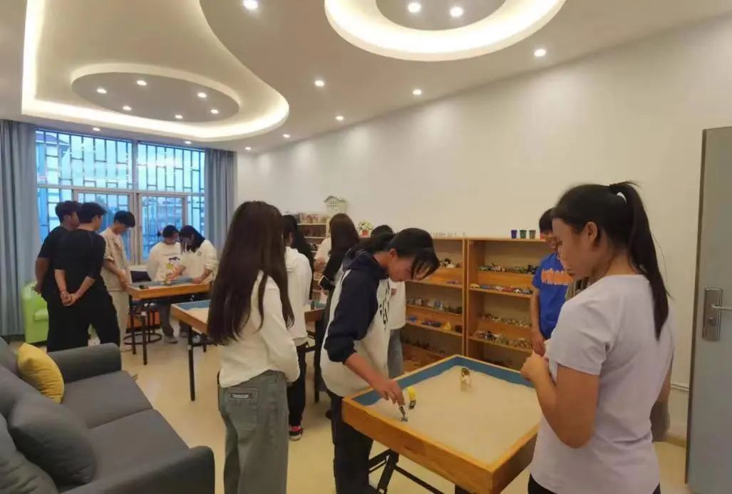 2023年10月23日下午18:00在学校心理中心沙盘室,心理社团开展了团体心理沙盘体验活动。一沙一世界,一人一故事,每一个沙具都有象征。通过沙具的摆放,让同学犹如在芬芳四溢的花园中散步,让心灵沐浴在阳光之下,陶醉与满园春色之中。在摆放沙盘的过程中,每个人的行为、表达,都映射在沙盘活动这个微小的世界中,充分体现了同学们从认识自己到觉察自己,最终自我完善的一个过程。