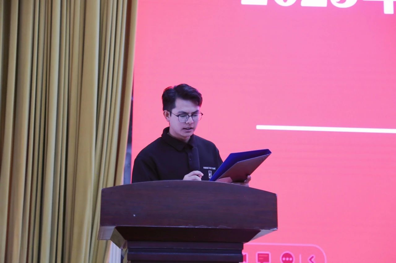 李钊宇同学汇报了学生社团的基本情况和过去一年社团工作部的各项工作情况,向全体参会成员表明了社团工作部后期的工作目标,要加强社团学生干部的思想政治教育,加强自身作风建设,全力心全意为社团服务,不断完善规范社团制度,共同营造浓厚的校园文化氛围。