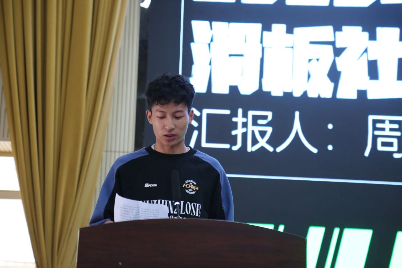 自媒体社、滑板社、兰亭书画社、国风社、茶艺社五个社团代表分别作了2023年度社团总结报告,报告了过去一年各社团的建设与发展。大家通过举办多种多样的社团活动,为社团成员提供了一个展示自我、展现才华的平台。同时,各社团也在推进自身发展、提高工作效率、完善制度建设等多方面不断进步,提升服务质量和工作水平。
