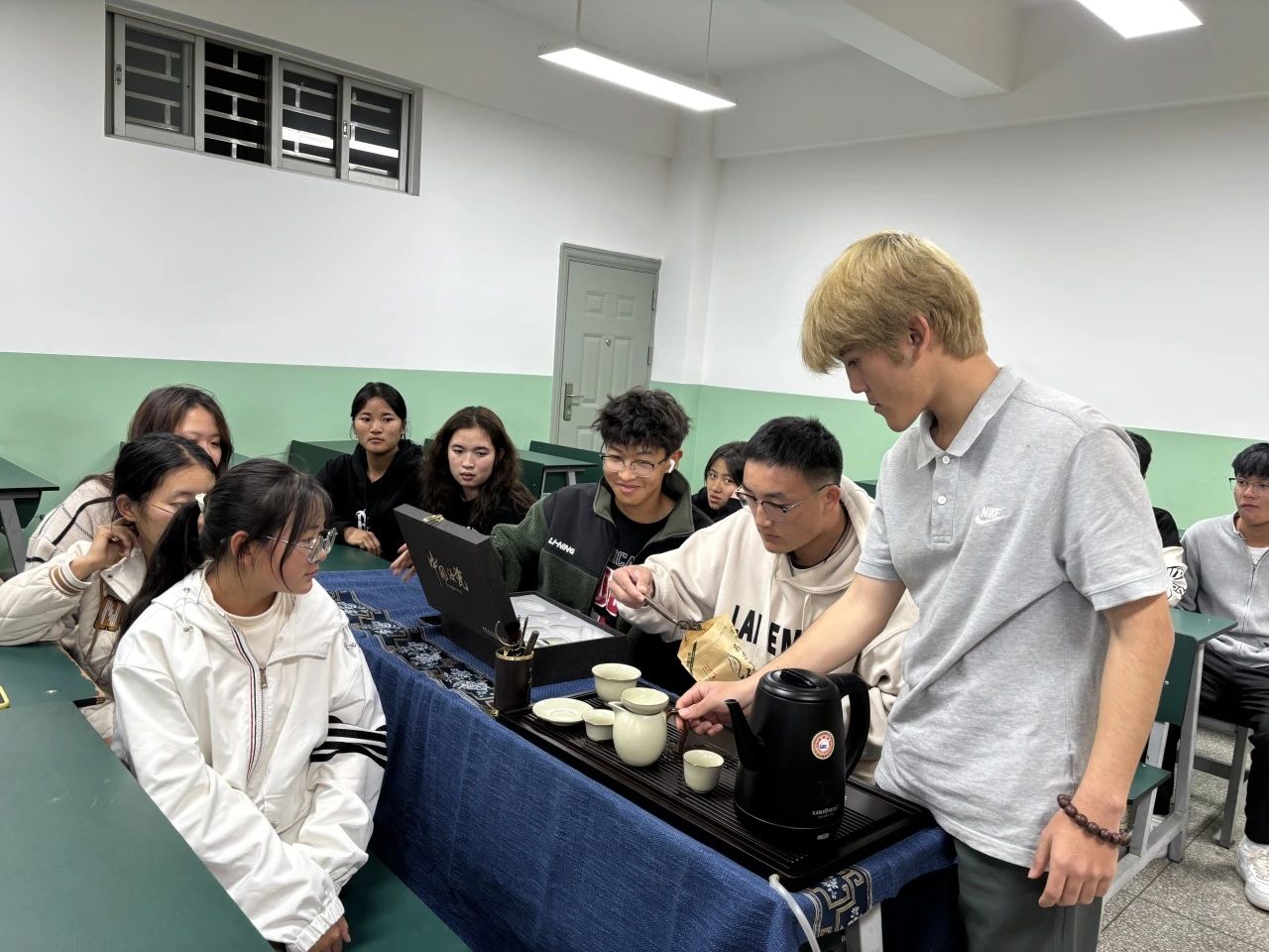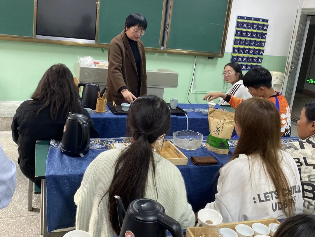 由指导老师讲解茶的起源、种类、功效以及与中国传统文化的紧密联系。社员们积极参与讨论,分享各自对茶文化的理解与感悟,现场气氛热烈。