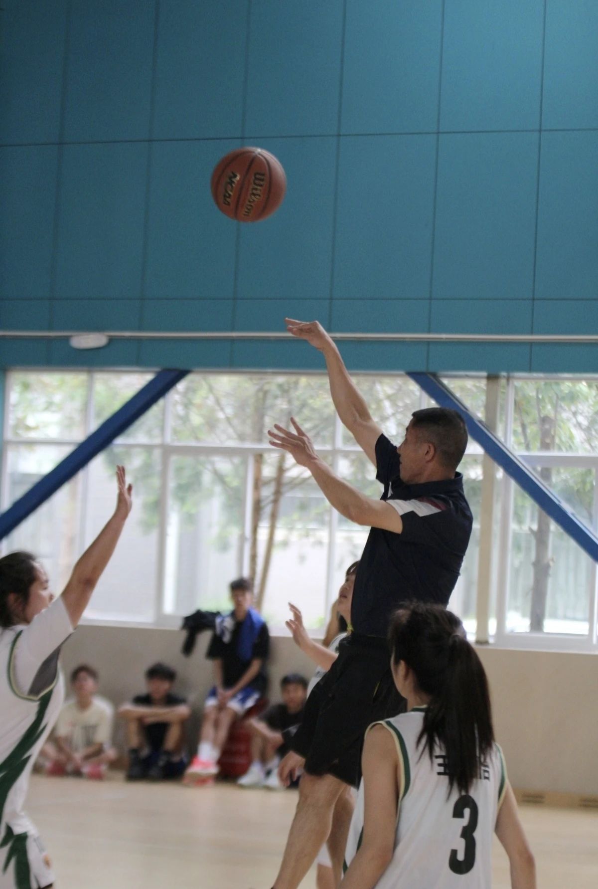 教职工队与女篮校队率先展开精彩对决,为本次篮球赛打响头阵。赛场上,球员们身姿矫健、配合默契,充分展现了篮球运动的魅力与团队协作精神。