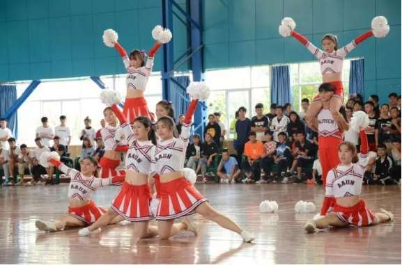 我院啦啦操队首次亮相2019年云南省高校周末足球、篮球、排球、啦啦操联赛体职院比赛。