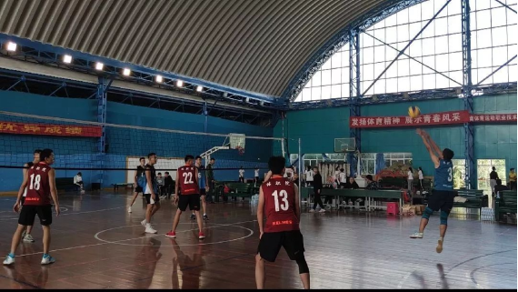 2019年11月23日云南体职院女排对云南农大女排的比赛如期而至在我院举行。一次次精准的发球,让我院女排遥遥领先于农大女排。我院女排的默契也为她们的胜利奠定了基础,有力的扣杀让农大女排猝不及防,最终一鼓作气以3:2拿下了整场比赛。