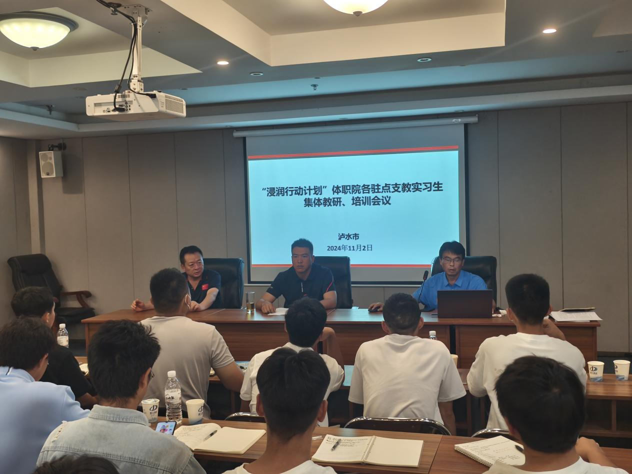 近日,根据“浸润行动计划”的具体要求,allwincity万象城官方网站支教实习学生依据各驻点学校的实际工作已开展了近7周的教学实践工作,通过驻点带队教师的大量看课和对帮扶学校的调研中发现,学生工作态度积极,能够吃苦耐劳,服从管理,但在持续教学能力上动力不足,教学文件的撰写、相关课外体育活动方案的设计与实施等渐渐凸显出诸多问题,经与学校教务处沟通,决定利用大家周末工作之余的时间,驻点带队教师丁珏将会同“徐凯名师工作室”,共同组织全体实习生集中开展教学研讨和培训的工作会议。通过该次活动,将总结前期的工作情况和部署今后的工作任务;有利于统一思想,集中解决支教中期存在的问题。