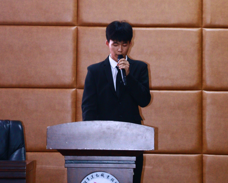 规范流程彰显公平公正 大会在庄严的国歌声中拉开帷幕。首先,是述职环节,现任主席团代表潘秋安同学作述职报告,全面回顾了上一届学生会在思想引领、文体活动等方面的工作成果,寄语新一届成员“以青春之名,续写校园精彩篇章”。