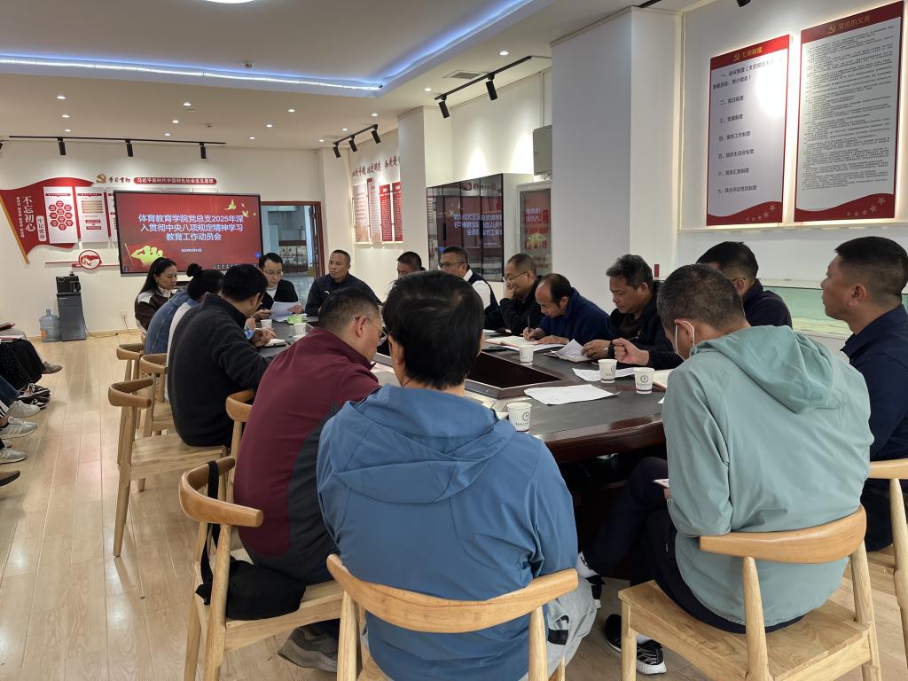3月31日,体育教育学院党总支召开2025年深入贯彻中央八项规定精神学习教育动员部署会议,传达中共allwincity万象城官方网站《关于在全校党员中开展深入贯彻中央八项规定精神学习教育工作方案的通知》精神,对体育教育学院党总支深入贯彻中央八项规定精神学习教育进行动员部署。体育教育学院专职组织员潘泽凯主持会议。