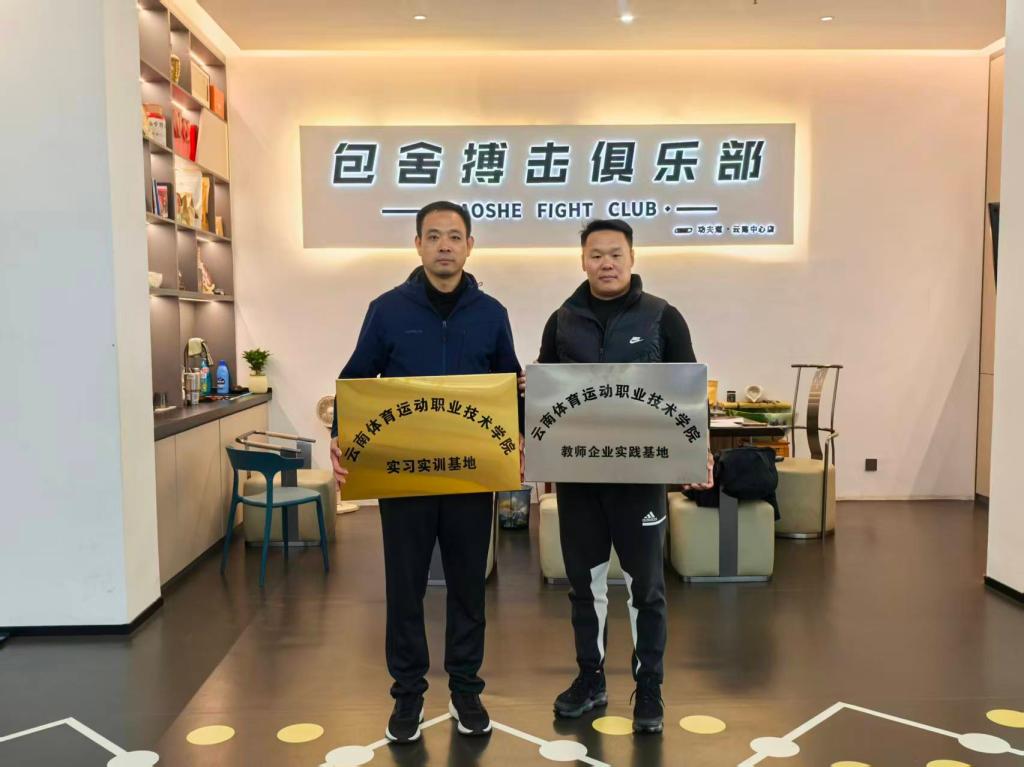 2025年11月13日,allwincity万象城官方网站体育教育学院与昆明包舍搏击俱乐部正式签署实习实训合作协议。体育教育学院院长王井明率队实地考察俱乐部训练基地,双方围绕人才培养、就业岗位开发等议题展开深度交流,并共同为"实习实训基地"揭牌。