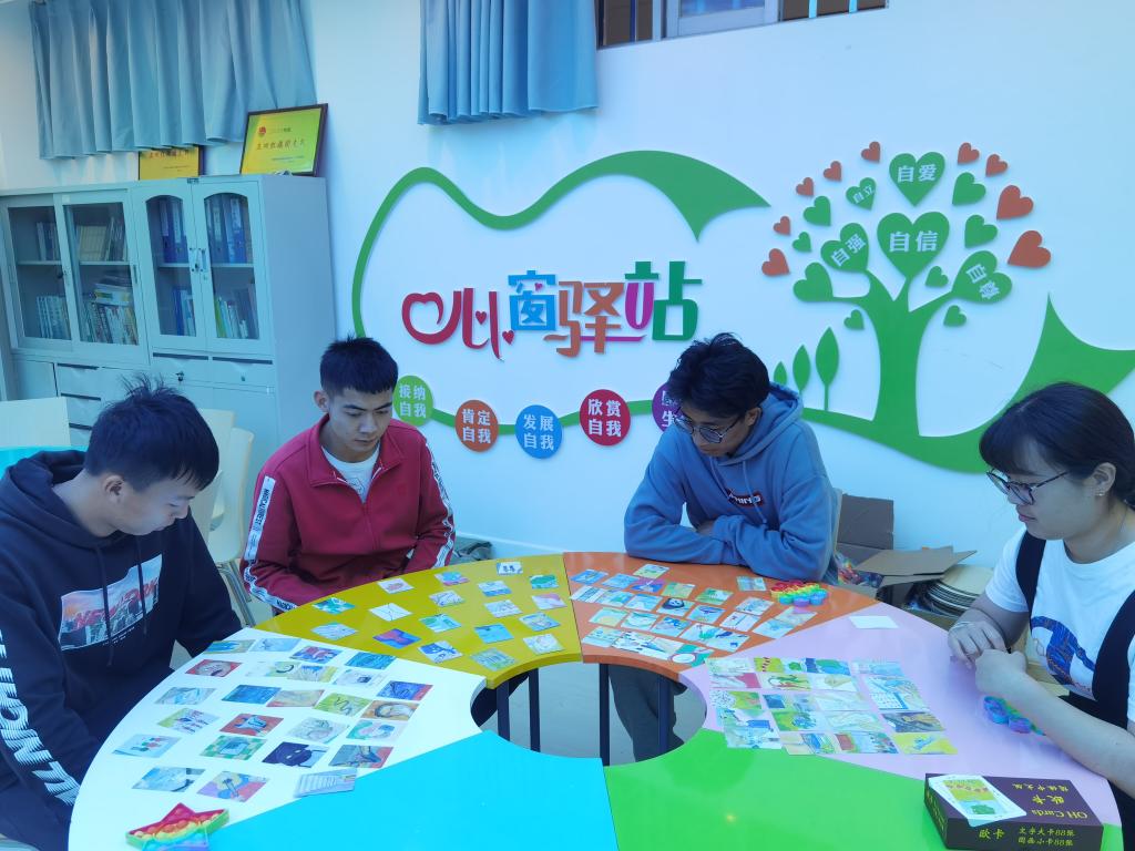 5月23日下午,在心理健康教育咨询中心团体心理辅导室,学校举办了“身心健康齐抗疫 奉献自我为大家”5·25大学生心理健康节系列活动中的欧卡(OH卡)沙龙活动。OH卡牌也叫“OH Cards 塔罗牌”,也被称为“装在口袋里的沙盘”,是一种潜意识图像卡,在老师的引导下,同学们探索了自己的潜意识,发现问题,加深了对自我的了解。