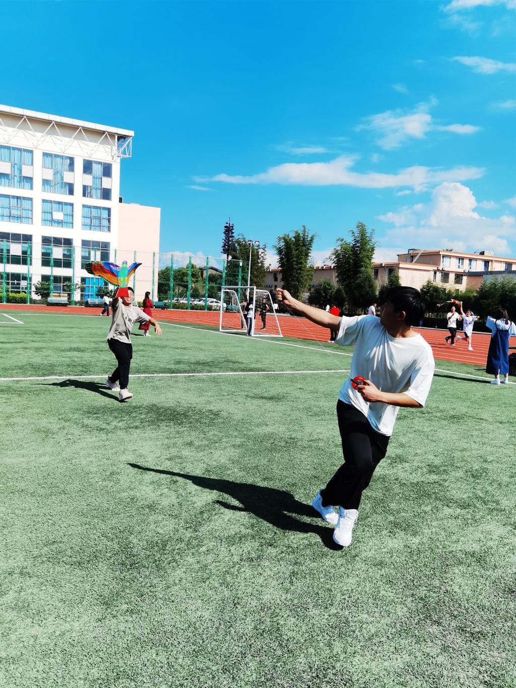 5月25日下午在学院小田径场开展了“放飞希望、放飞梦想”DIY涂鸦风筝放飞活动。同学们在空白风筝上绘制心中的五彩斑斓,放飞理想和希望一幅画胜过千言万语。