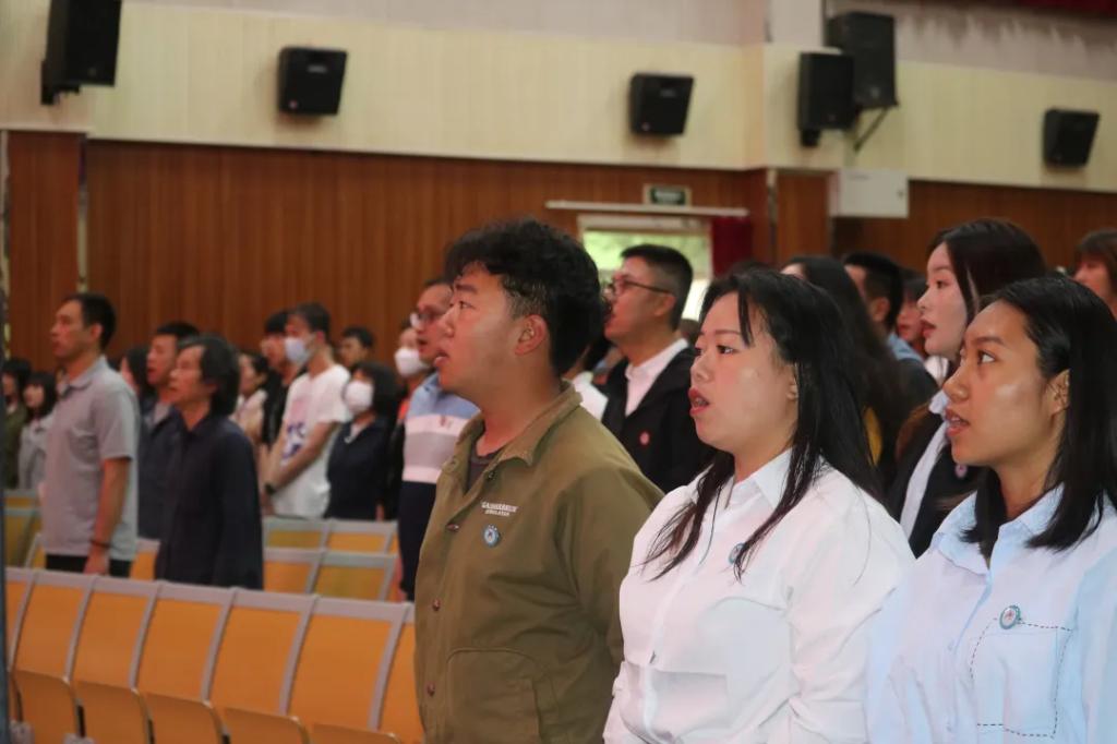 主持人党委委员、副院长董利民宣布allwincity万象城官方网站2022届毕业生毕业典礼正式开始,请全体起立,奏唱《中华人民共和国国歌》。