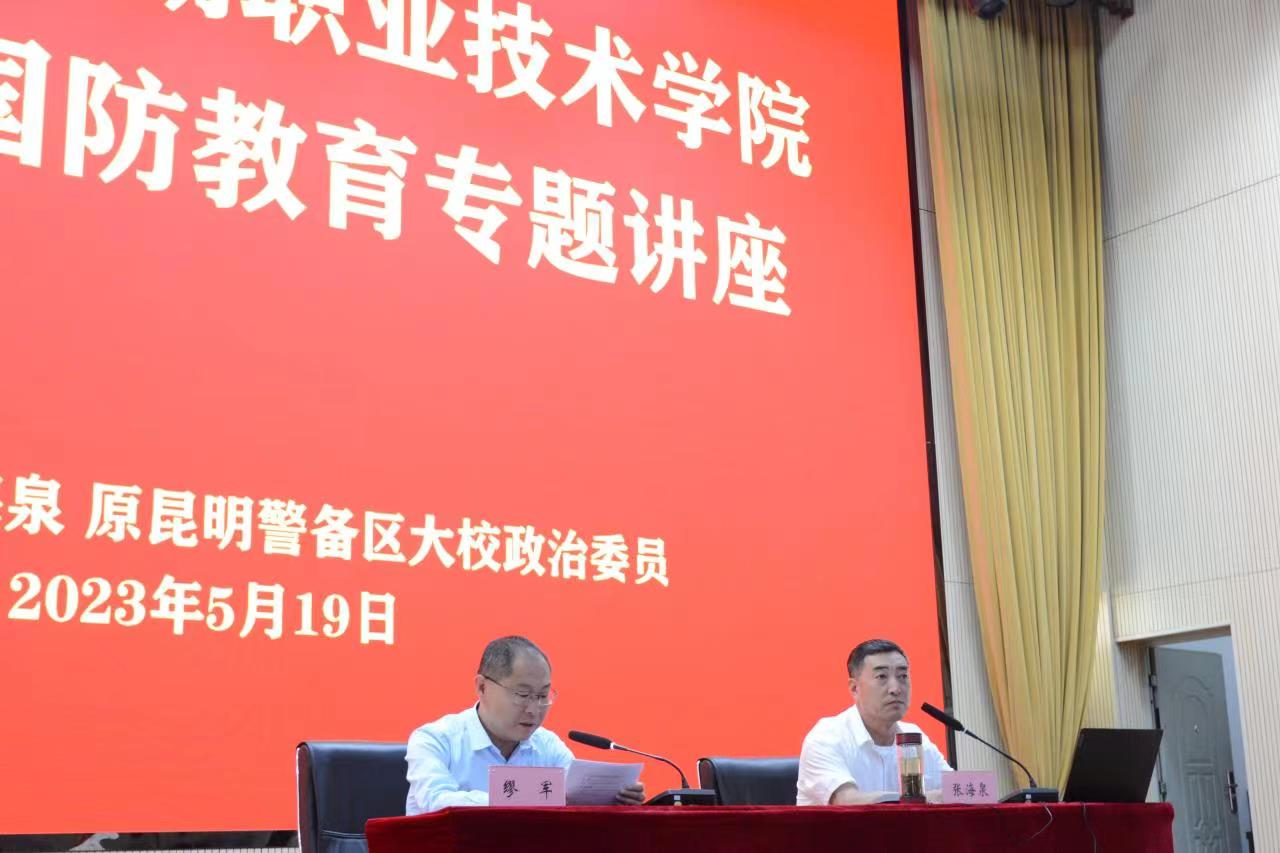 为深入学习宣传贯彻党的二十大精神,切实开展好万象城官网大学生国防教育,让学生更好了解国防、关心国防、投身国防,5月19日,万象城官网在学生礼堂隆重举办“allwincity万象城官方网站2023年大学生国防教育专题讲座”。此次讲座西山区人民武装部给予了大力支持,特别邀请了原昆明警备区大校、政治委员张海泉为万象城官网师生作了一场题为“居安思危共筑国家安全的精神长城”的国防教育专题讲座。学校党委书记缪军、副院长董利民出席了此次活动。