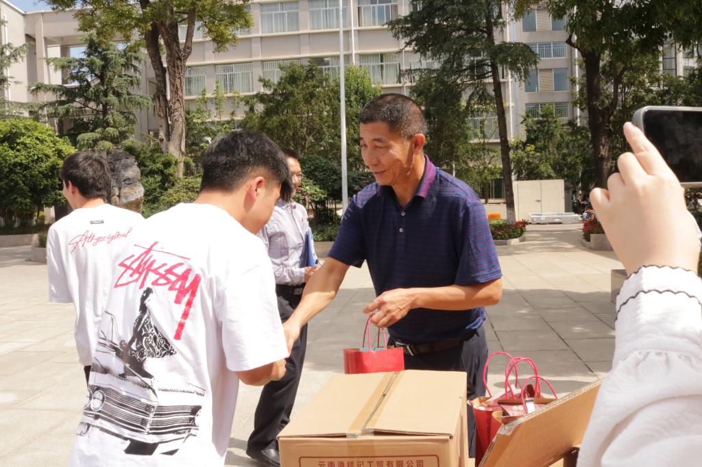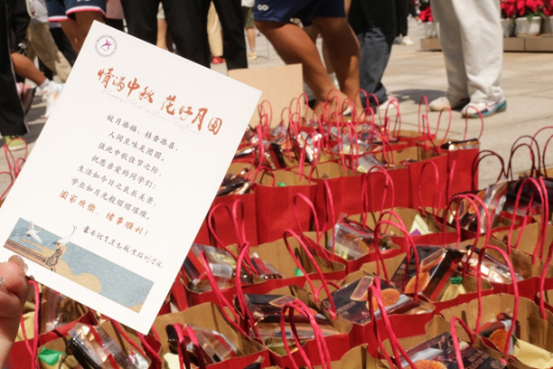9月13日上午,由学校学生处牵头,各二级学院协助组织开展中秋月饼发放活动,为在校学生送去了节日的祝福。活动现场,校领导缪军、代红兵、周骎、董利民以及各二级学院的老师到场将一份份精美的月饼送到每位学生的手中,送上了最真挚的节日祝福。月饼虽小,关怀很满,幸福的笑容洋溢在每位同学的脸上,大家一同品尝,互相分享,感受着家一样的氛围。