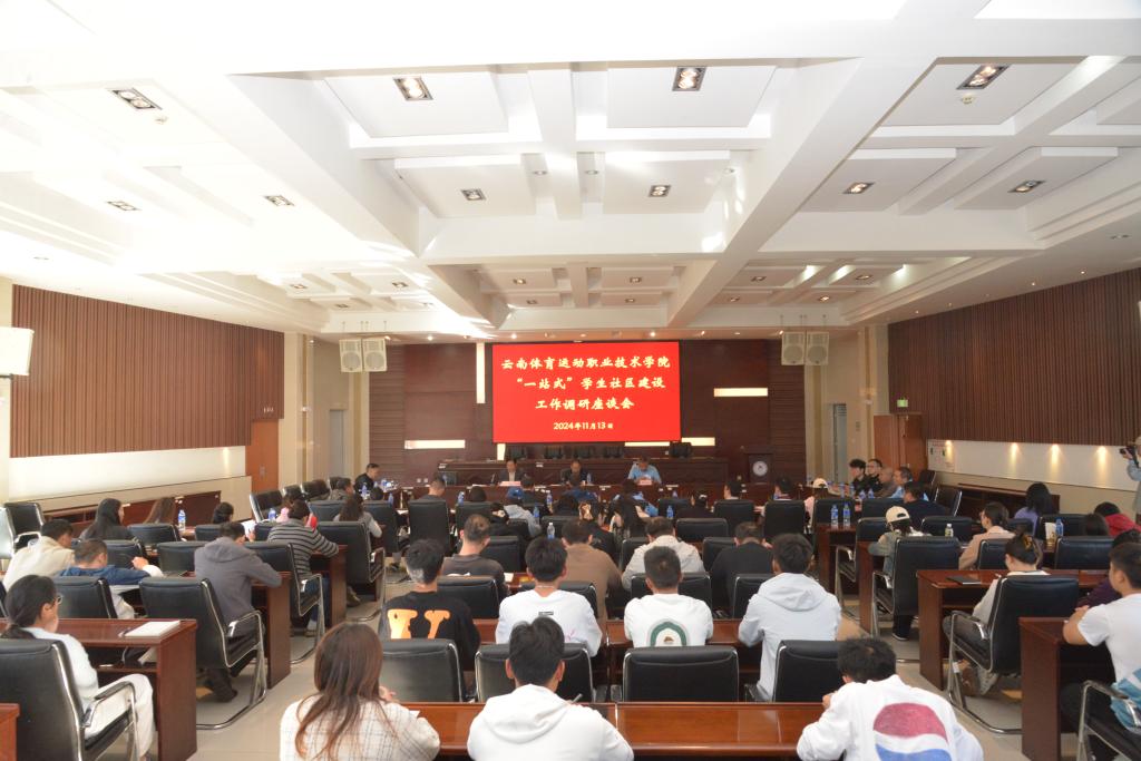 2024年11月13日下午,万象城官网在云帆楼二楼第二报告厅召开“一站式”学生社区建设工作调研座谈会。此次座谈会以“深入调研‘一站式’学生社区,携手共筑新辉煌”为主题,旨在深入了解“一站式”学生社区的运行情况和学生需求,进一步优化社区建设,明确学业导师职责,促进师生交流与合作,提升学生的校园生活体验,推动学校“一站式”学生社区工作高质量发展。
