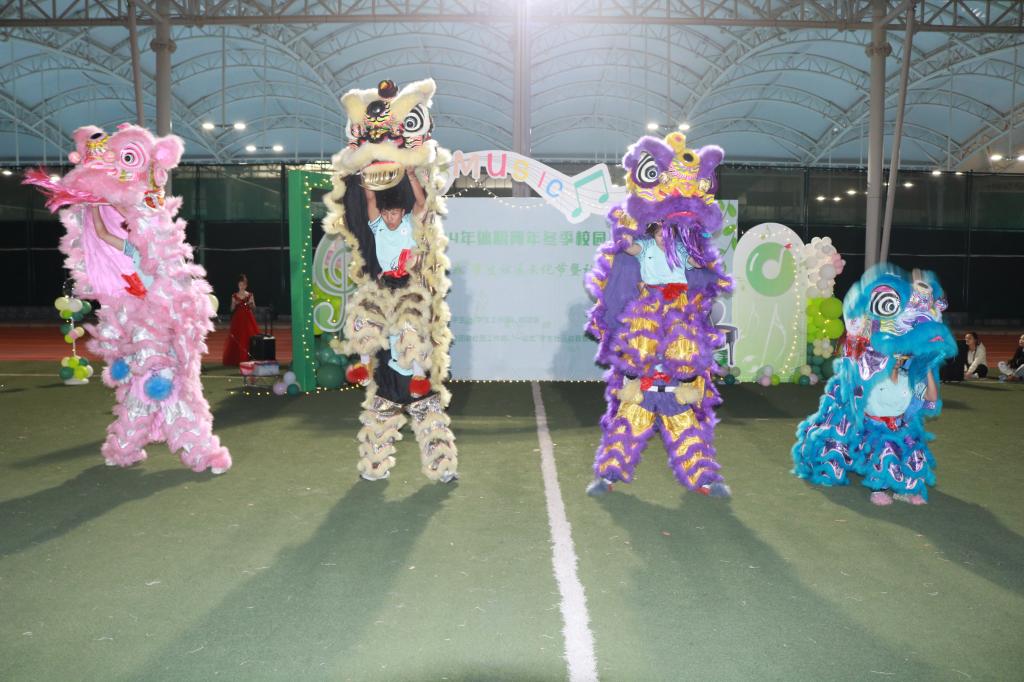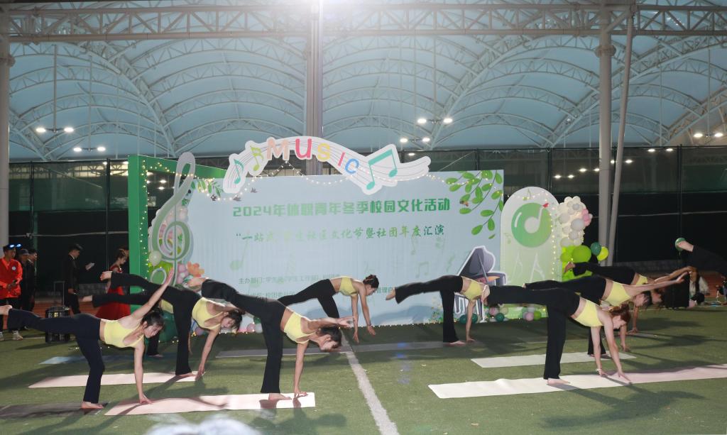 活动现场,各个社团轮番表演舞蹈、歌曲、乐器演奏、小品等各个类型的节目。其中,龙狮校队带来节目《萌狮出道》,舞狮队员身着色彩鲜艳的服装,将中华传统文化与现代音乐、舞蹈元素完美结合,展现了传统文化的活力与创新精神,使得整个表演既有传统韵味又不失时尚感,给观众留下了深刻的印象,赢得了现场观众的阵阵喝彩;瑜伽社带来的表演《高飞》,舞者们用优美的舞姿不仅诠释了瑜伽的柔与美,还传递了瑜伽带给大家的内心平和与精神专注;音乐社上演的原创歌曲《梦》,以其悠扬的旋律和深情的歌词,触动了在场每一个人的心弦,表现了体职青年对美好生活的向往和对未来的无限憧憬。