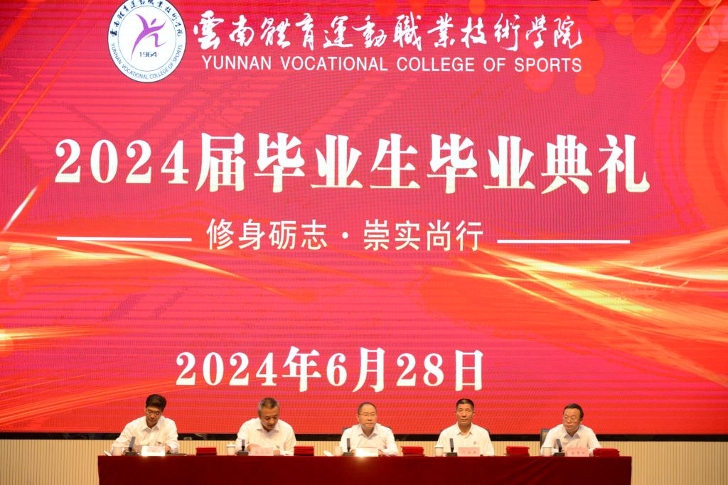 党委副书记、院长代红兵为毕业典礼致辞。他说,毕业不仅仅是结束,更是新的开始。将来无论大家走向何方,无论身处何地、从事何职,都要记住学校的培养和教诲,保持对体育的热爱。他希望毕业生能保持积极向上的心态,坚持不懈地追求梦想,发挥所学,为社会作出应有贡献;希望大家继续学习,不断进取,能够以开放的心态去接纳新事物,以积极的心态去面对困难,以创新的思维去解决问题;希望大家保持良好的品德和修养,坚守道德底线,诚实守信,乐于助人,做一个有责任、有担当、有爱心的人。