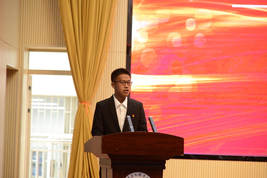 思政课教师曲丹代表教师发言。她希望大家无论顺境还是逆境,都应保持初心,坚守信念,做一个有担当、有责任心的人,为社会、为国家贡献自己的力量。