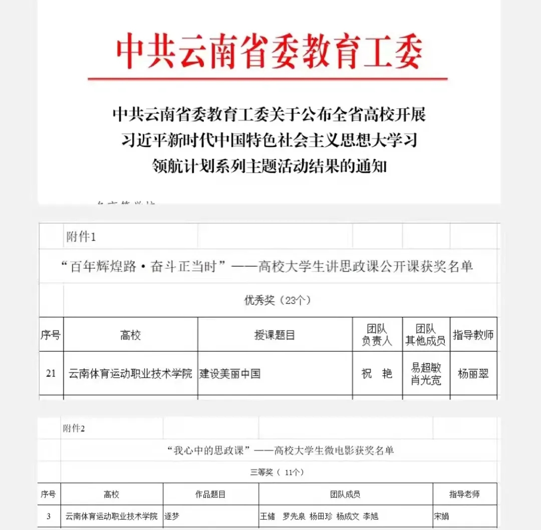 近日,在中共云南省委教育工委关于开展全省高校习近平新时代中国特色社会主义思想大学习领航计划系列主题活动中,万象城官网一个作品在 “我心中的思政课”----高校大学生微电影活动中荣获三等奖,一个作品在 “百年辉煌路,奋斗正当时"活动中荣获优秀奖。