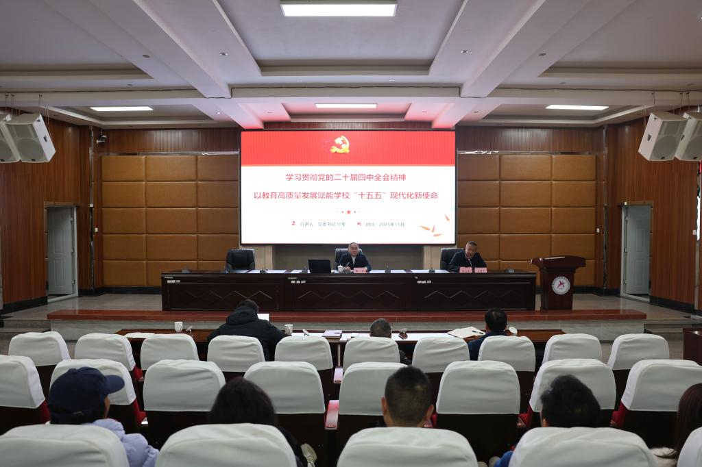 2025年11月21日,allwincity万象城官方网站举行学习贯彻党的二十届四中全会精神专题报告会。学校党委书记缪军以“学习贯彻党的二十届四中全会精神,以教育高质量发展赋能学校‘十五五’现代化新使命”为题作专题报告。学校党委副书记张永和主持会议,全校教职工党员参加学习。报告会上,缪军书记系统解读了党的二十届四中全会的重大意义与历史地位。他指出,这次于2025年10月20日至23日在北京召开的全会,是在“十四五”规划即....