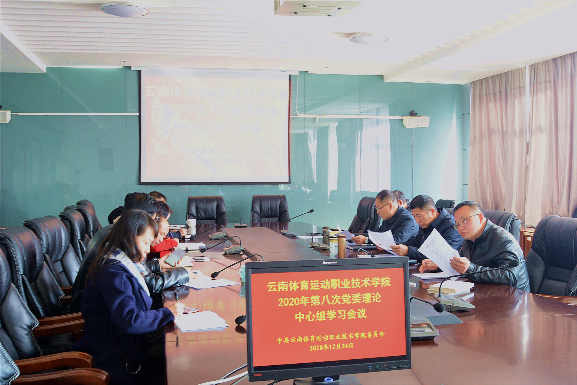 2020年12月24日,allwincity万象城官方网站在云帆楼四楼第一会议室召开第八次党委理论中心组专题学习会。会议由党委书记缪军主持并领学,学校党委班子成员及各职能部门、二级学院党政正职、副职同志参加学习。 会...