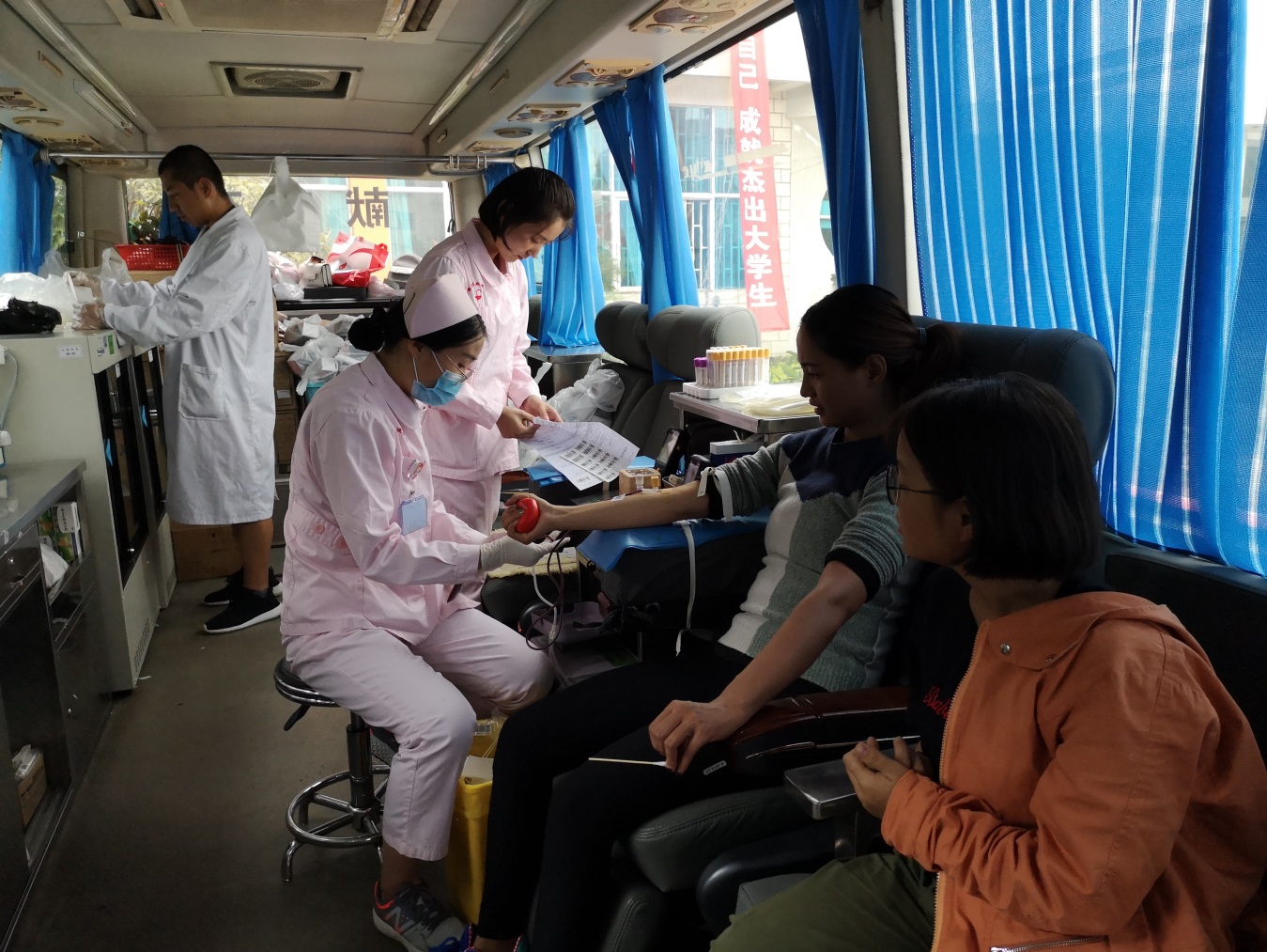 本网讯 日前,昆明市血液中心的一辆献血车来到了校园内,没课的师生们早早就在此等候,短短的半个小时,献血车前就排满了准备化验献血的学生。很多同学是有过献血经验的,也有部分学生是第一次献血。体育传媒与艺术学...