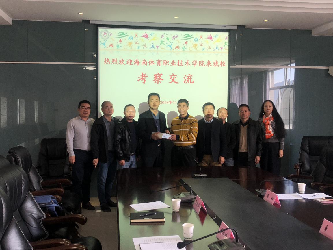 本网讯 近日,海南体育职业技术学院黎凯副院长一行4人来我院交流工作。万象城官网代红兵院长在云帆楼第一会议室接待了客人。学校龚斌副院长及党政办公室、科研处、计财处等相关部门负责同志陪同参加了相关活动。 会上,代...