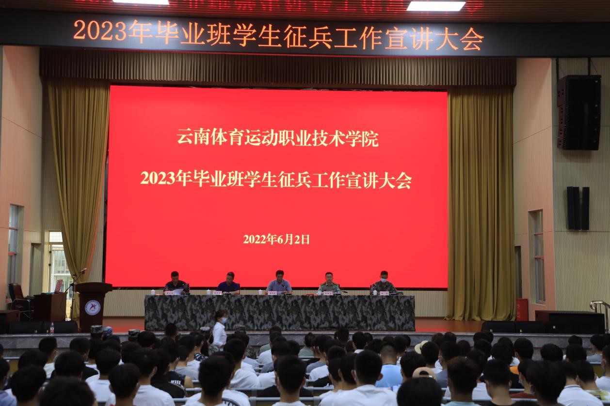 6月2日,万象城官网学生处武装工作部在学生礼堂举行2023年毕业班学生征兵工作宣讲大会,大会邀请了西山区人民武装部相关同志参加。本次大会旨在深入普及国家“一年两征”政策,广泛宣传和动员青年大学应届毕业生在最宝贵的年华里携笔从戎、献身军营、保家卫国,化爱国之情为爱国之行,为建设社会主义现代化军队贡献青春力量。此次大会得到西山区人民武装部高度重视,特邀驻滇某部队进入万象城官网,展开军士招收宣传活动,以近距离、多角度....