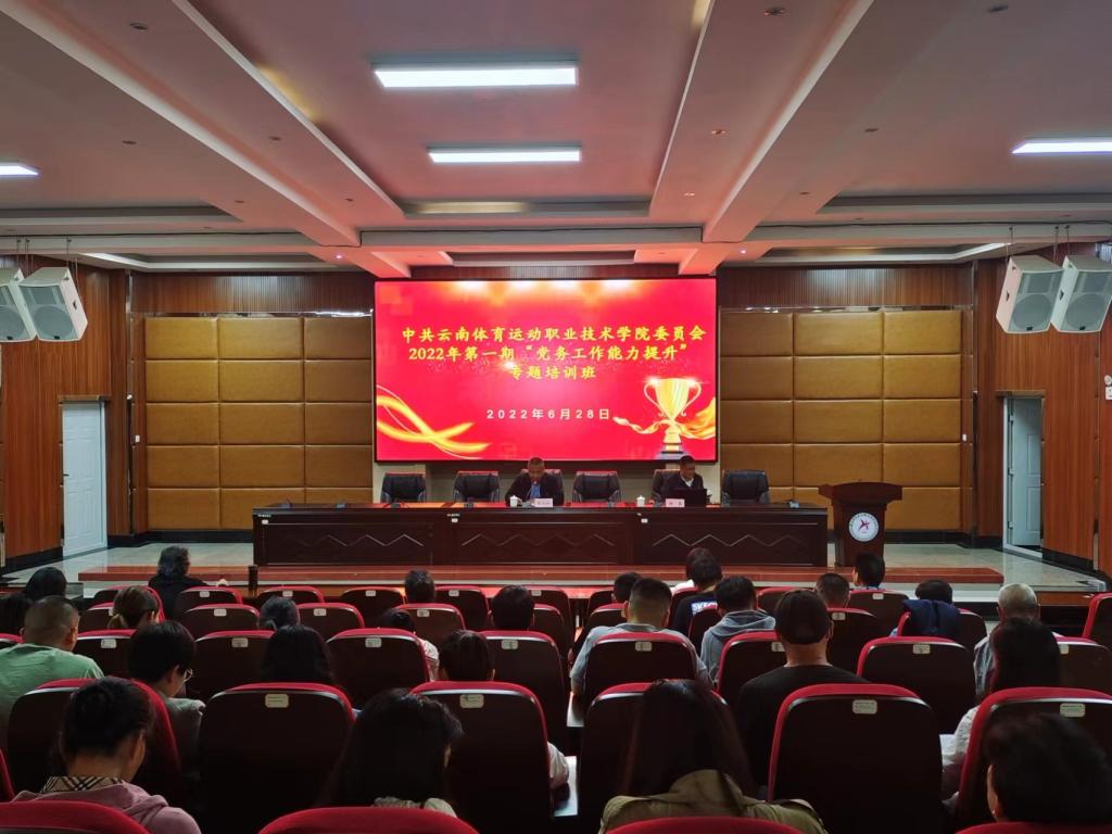 2022年6月28日下午,学校党委在云帆楼第一报告厅举办了2022年第一期“党务工作能力提升”专题培训班。此次培训由云岭先锋讲师谢鑫同志主讲,会议由学校党委副书记张永和同志主持,党总支部书记、副书记、总支委员、党支部书记、副书记、支部委员共30余人参加。谢鑫同志从发展党员重难点、发展党员违规违纪问题的认定和处理两个方面,针对高校党务工作的重要性、党员档案构成、发展党员工作重要条例、申请入党五大程序25个步骤的...