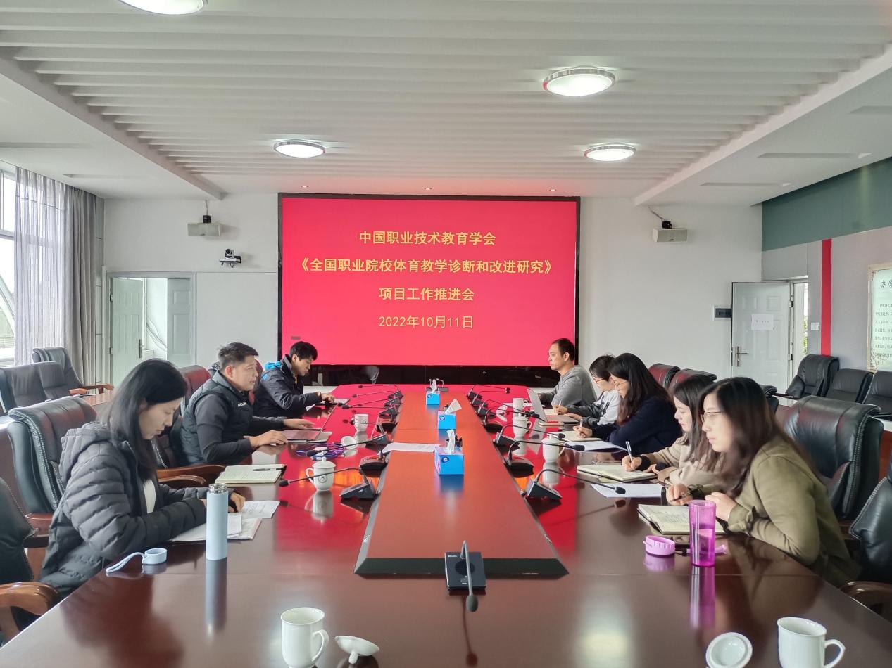 2022年10月11日上午,学校在云帆楼第一会议室召开中国职业技术教育学会《全国职业院校体育教学诊断和改进研究》项目工作推进会,会议由副院长聂真新同志主持。项目工作组副组长李晋龙、王井明等项目课题组成员共9人参加了会议,同时邀请中国职业技术教育学会体育工作委员会秘书长鲁巍参加了线上会议。 会上,鲁巍传达了中国职业技术教育学会对推进职业院校体育教学调研工作的要求,表达了对职业院校体育教学调研工作和职业....