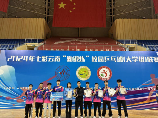 在2024年七彩云南“勤锻炼”校园乒乓球(大学组)比赛中,运教学院刘巧琳、马建两名教师带领体职院学生组成的学校乒乓球代表队取得了令人可喜的成绩。