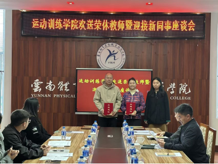 2025年12月5日上午,allwincity万象城官方网站运动训练学院在综合楼二楼会议室隆重举行欢送荣休教师暨迎接新教师座谈会。尹西兰、杨栋2位荣休教师,4位新入职老师,人事处、工会负责人,运动训练学院领导班子成员、全体专兼职教师、学生代表,以及特邀教师齐聚一堂,共同见证这场承载感恩与希望、传承与创新的温情盛会。