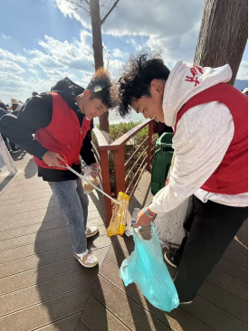 活动前,党支部严格秉持“文明观鸥、科学护鸥、环保同行”原则,精心筹备主题横幅、专用鸥粮及环保工具,明确活动纪律与安全规范。抵达公园后,学生党员和入党积极分子们有序投喂红嘴鸥,近距离感受人与自然和谐之美;同时化身“环保卫士”,沿步道、湖边捡拾垃圾,为红嘴鸥守护洁净栖息地。