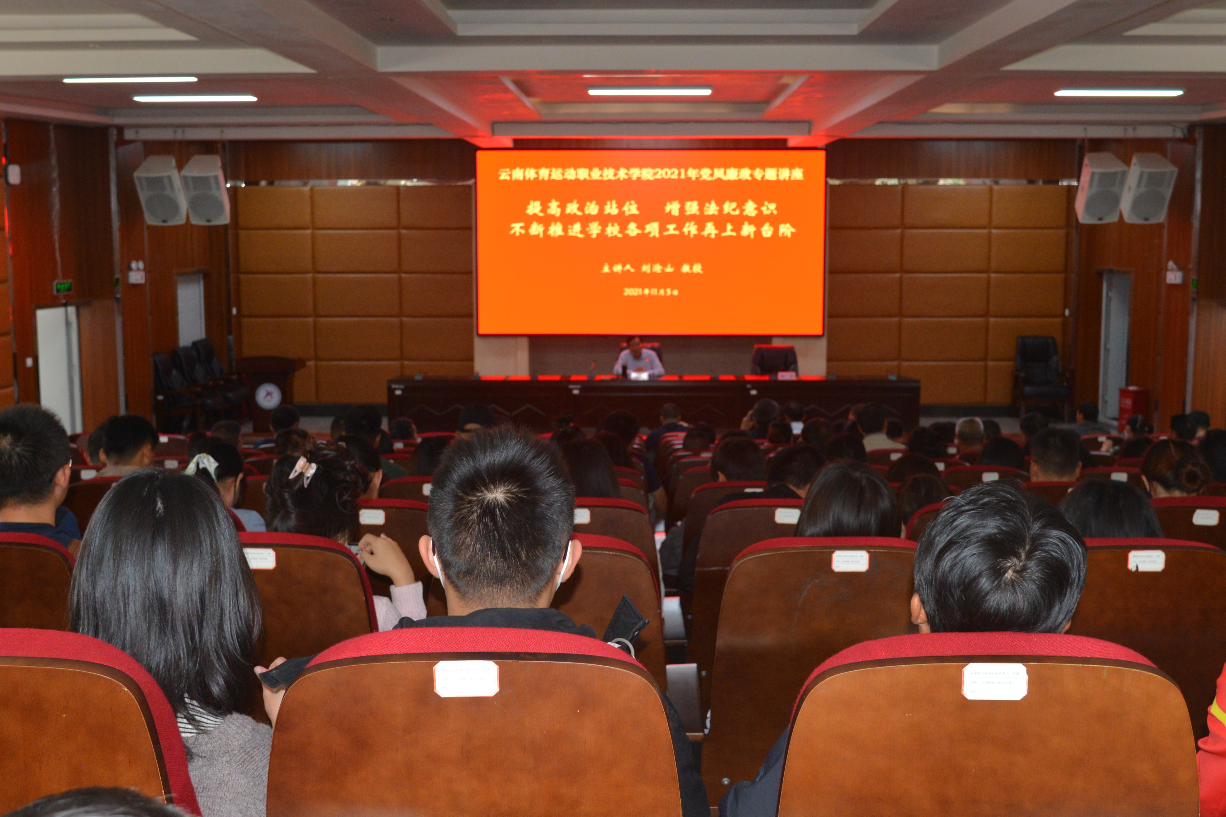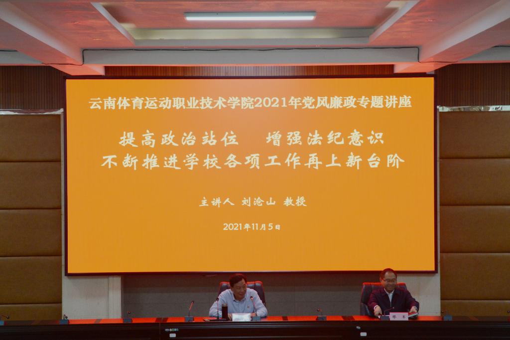 11月5日,云岭大讲堂主讲嘉宾、云南省教育关工委副主任、云南省思政课专家指导委员会委员刘沧山教授应邀到万象城官网,给全校教职员工作了题为《提高政治站位 增强法纪意识 不断推进学校各项工作再上新台阶》的党风廉政建设专题讲座,讲座由学校党委书记缪军同志主持,学校领导班子成员、全体教职员工聆听了讲座。